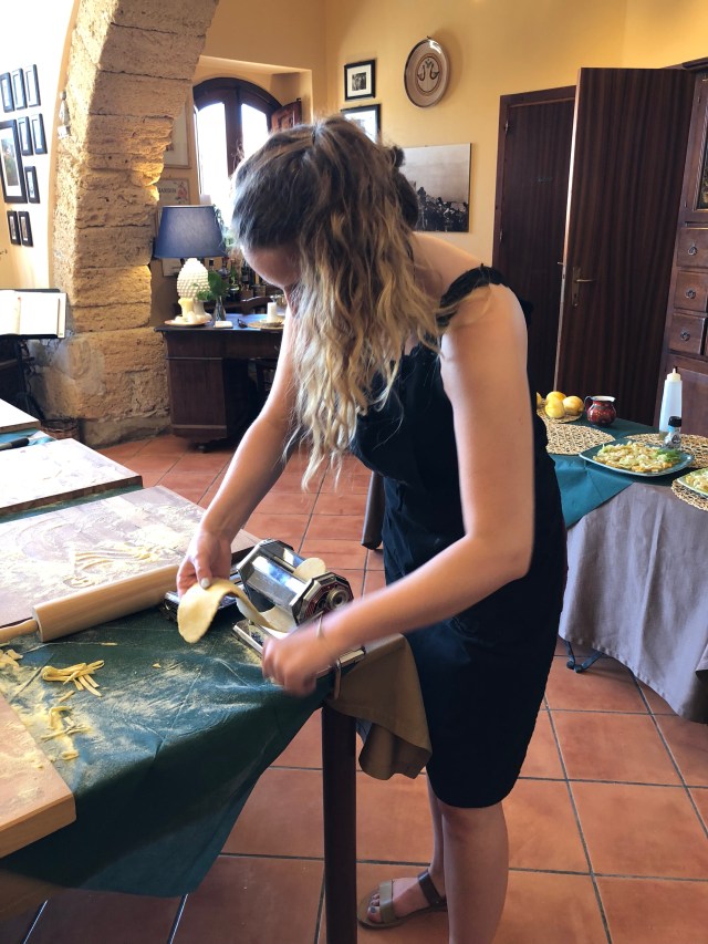 Tayl and I walked into to town along the beach and met Dan at a bakery for some pastry’s and a coffee. Dad and Jan skipped breakfast in preparation for a big day of eating! We booked a Sicilian cooking course for today at a beautiful villa along the coast of Cefalu.