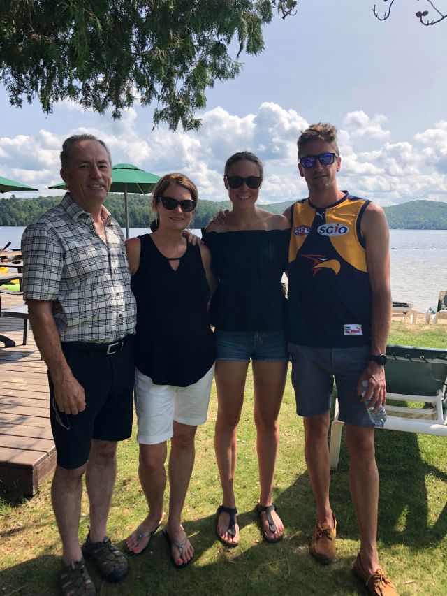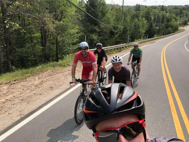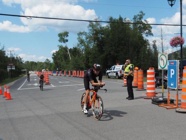 The Mont-Tremblant bike course is amazing because you come by the transition area where all the spectators are four times. It’s a figure 8 and you go around twice. As soon as I came in from the first section of the bike, I spotted Dan’s parents cheering me on. Nothing but smiles!! And I was right on track, averaging just over 27km/h.