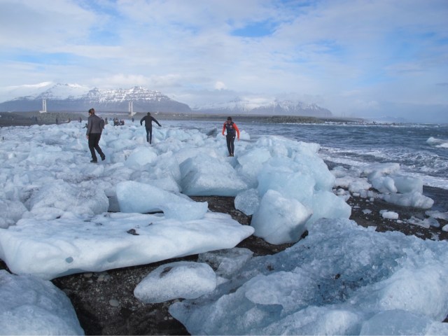 - Playing the ground is lava on beached Icebergs at Jökulsárlón Glacier Lagoon