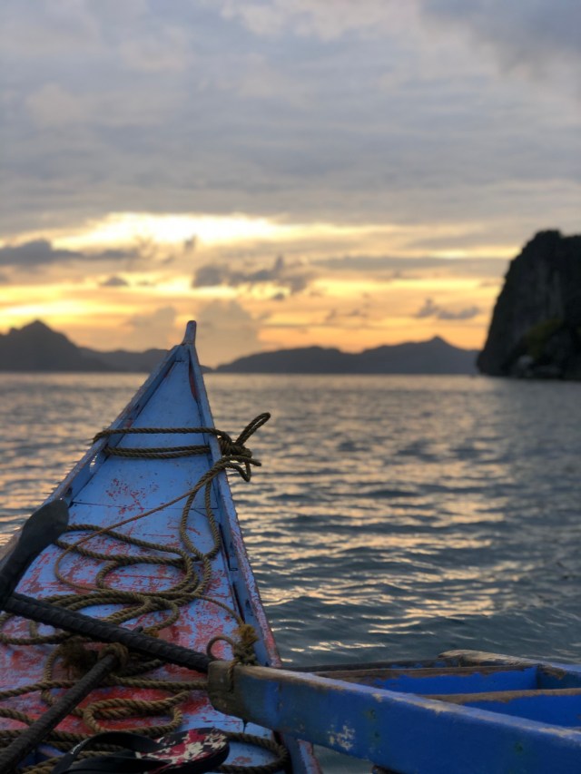 We arrived at around 7pm in El Nido and the sun was just starting to set. We got dropped off at what looked like a slum alley way – a couple of goats about and a few cats. Someone watching the tele in their living-room with the door wide open and a few taxi drivers killing time in their scooters chatting. A man comes up to us, grabs our luggage, and waves to follow him… uh, ok…
