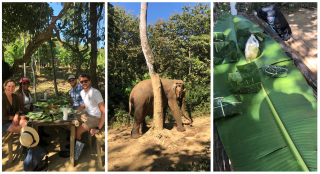 The other massive highlight in Luang Prabang was the elephant conservatory we went to. Laos used to be called “The Land of Million Elephants”. Now, Laos only have about 700 elephants left in the wild. MandaLao is an elephant conservation that focuses on elephant welfare. You learn so much and you will fall in love with the elephants you hike with. There is strictly no elephant riding. You simply follow them along a path and watch them eat their way through the nature around them. It is beautiful. We handed them sugar cane and banana’s and got to know their different personalities. In the middle of the full day tour you also enjoy lunch in the woods – packaged up and wrapped in banana leaf. We had our tour with an American couple who were also on their honeymoon. It was an amazing day, and we didn’t want to leave.