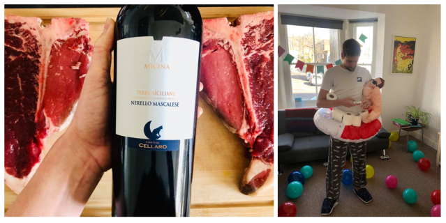 Dan’s birthday was on day 2 of lockdown – everyone was in the stockpiling craze and toilet paper was like gold. Since we weren’t able to plan anything else for a birthday celebration some how we still managed to make it feel like an occasion. When Dan saw these steaks for the first time – he looked like a kid in a candy shop. And we paired it with one of my favourite wines. Thanks to Meat NW5 for delivering!